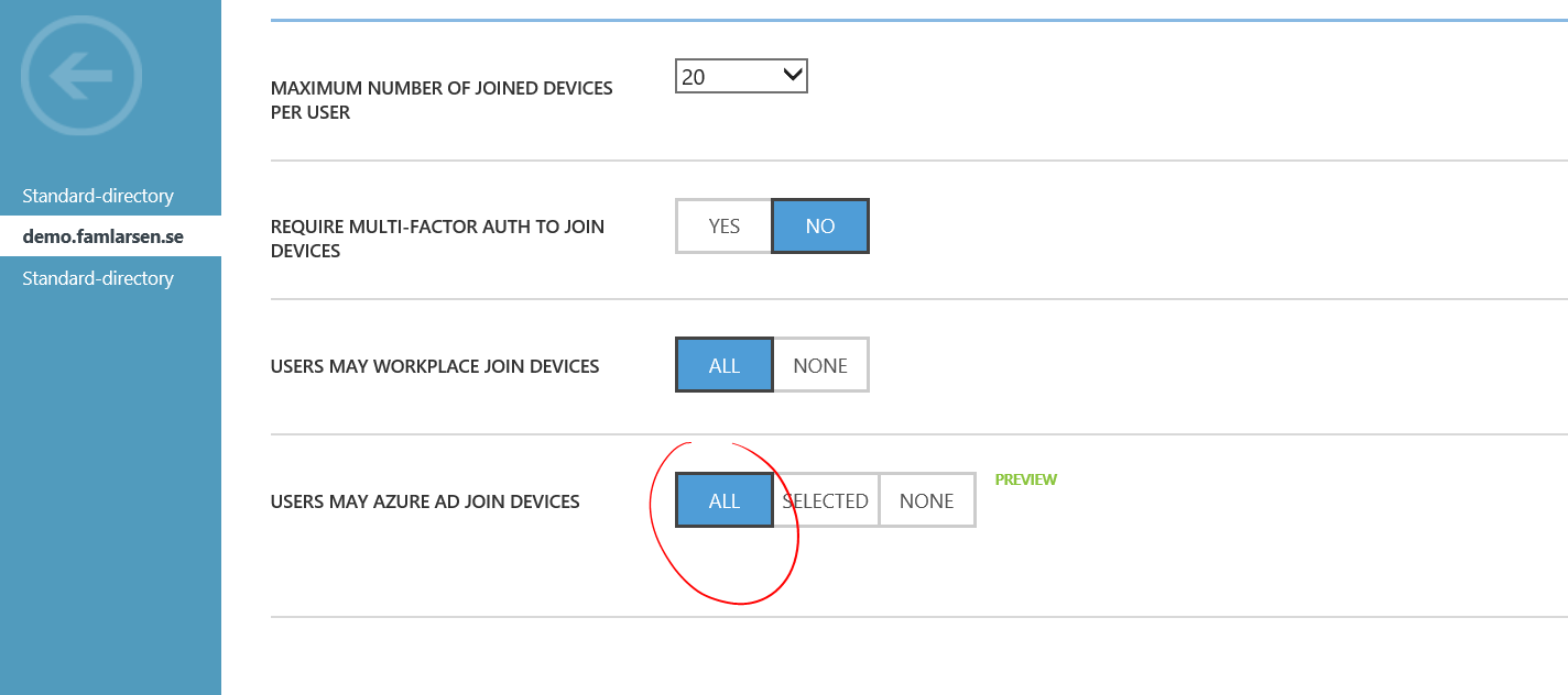 First enable “Join Azure AD Preview” in your Azure AD