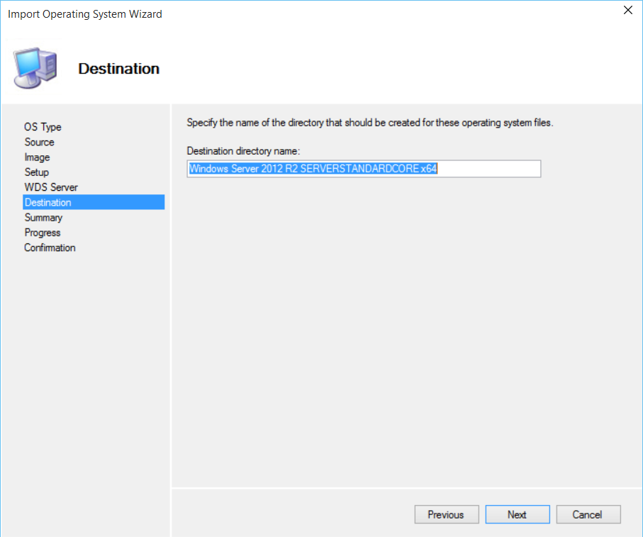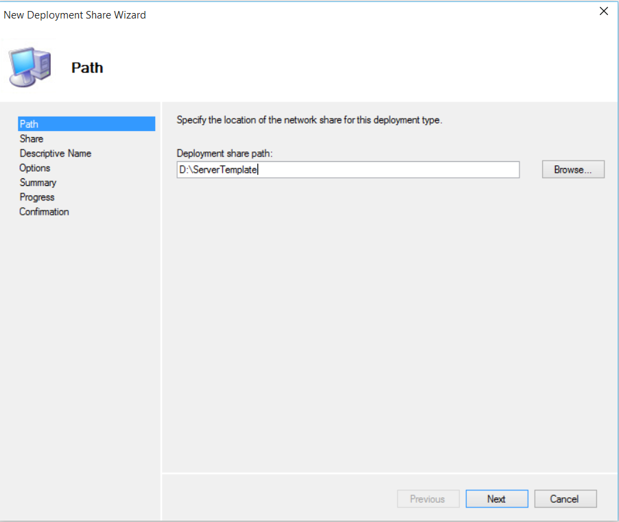 Enter the place for the Deployment Share