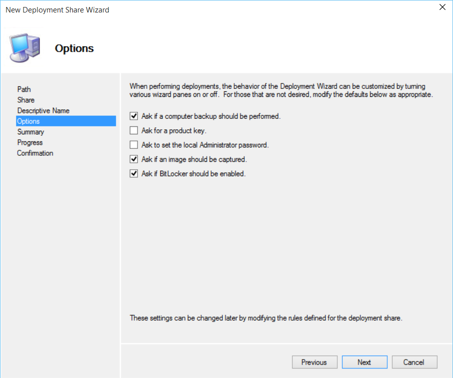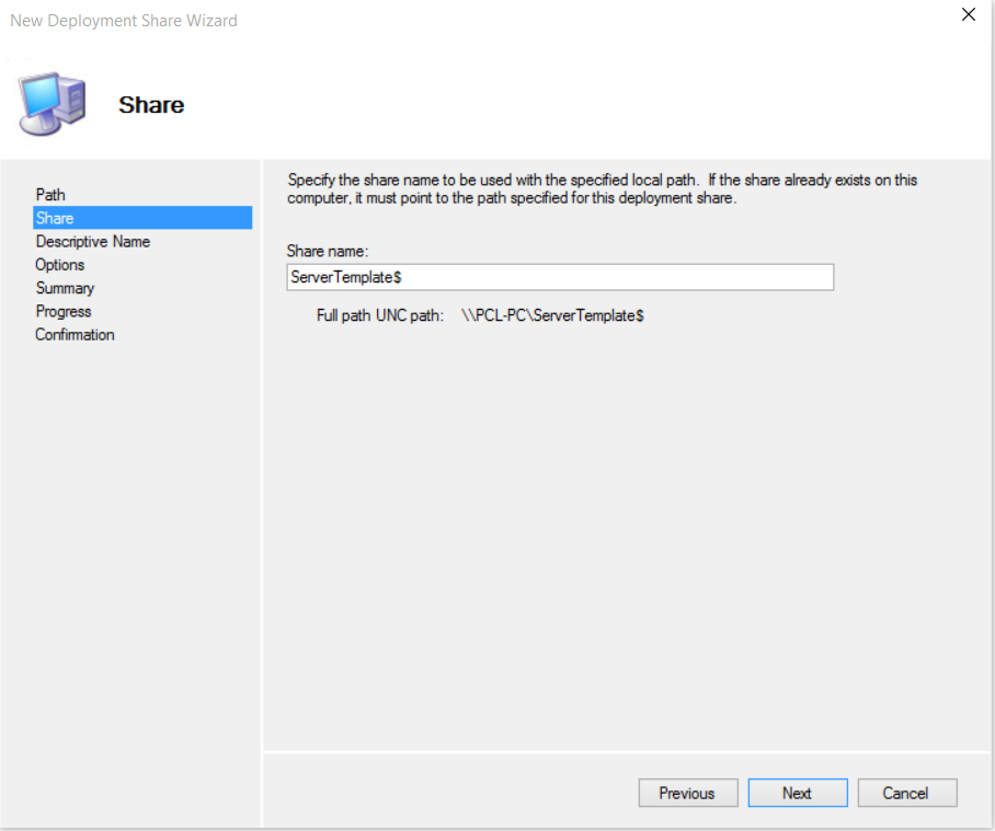 Enter the Deployment Share name