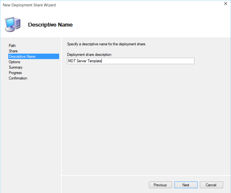 Enter the Deployment Share discription