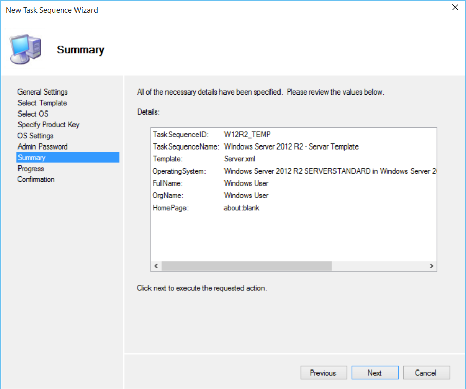 4b) Create Task Sequence for Server Template
