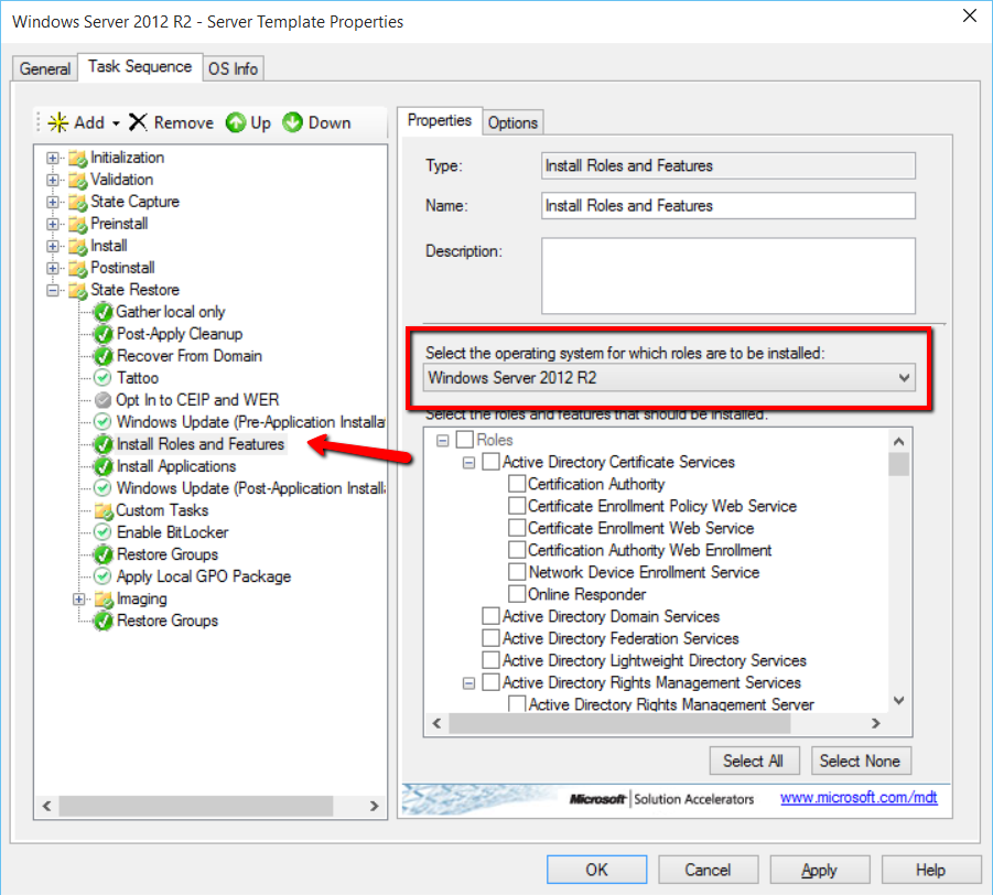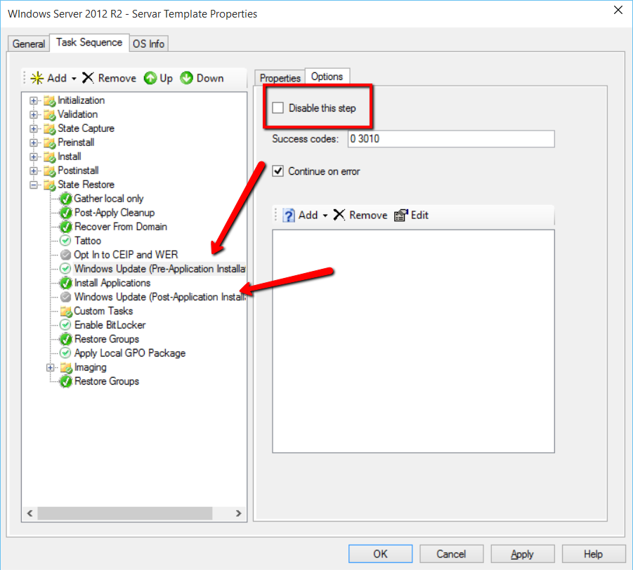 Edit Server template Task Sequence