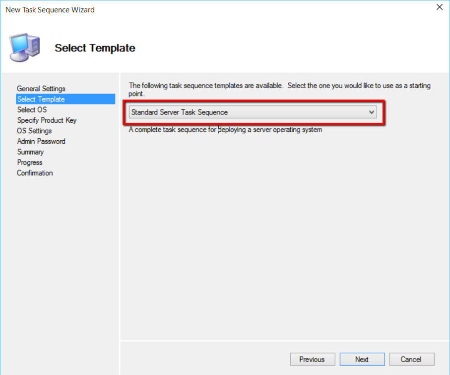 Select the Server Template Task Sequence