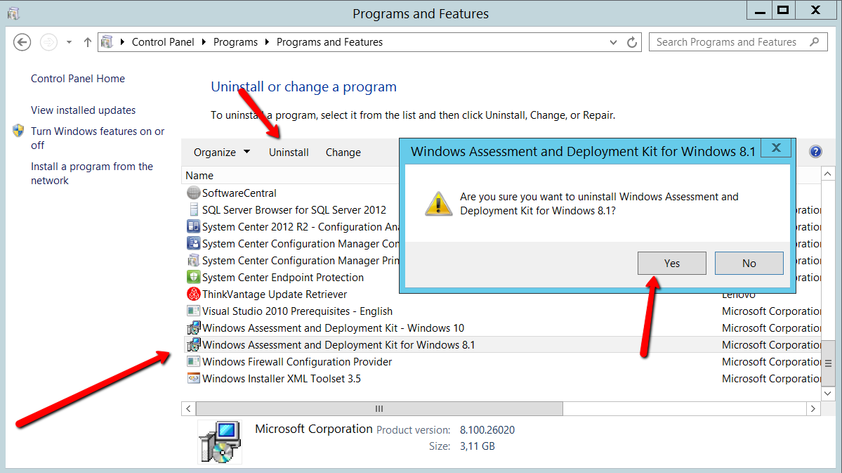 First remove the Windows 8.1 ADK