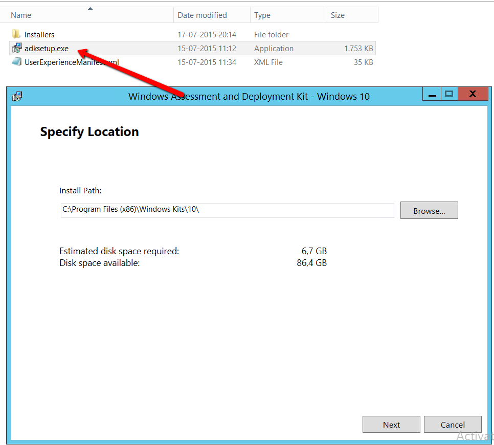 Then install the ADK for Windows 10