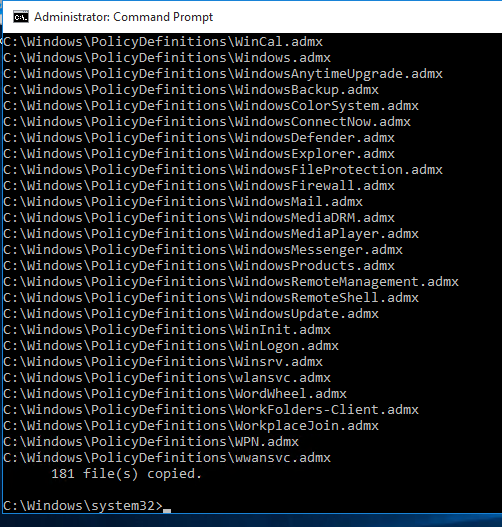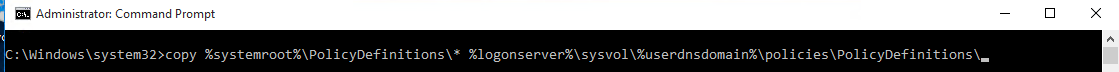 copy %systemroot%\PolicyDefinitions\* %logonserver%\sysvol\%userdnsdomain%\policies\PolicyDefinitions\