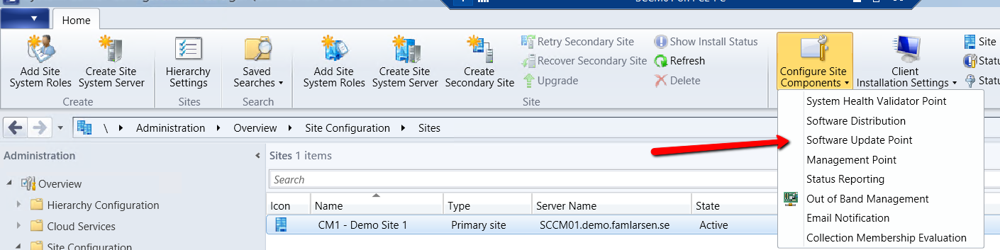 Select “Configure Site Components” — > Software Update Point