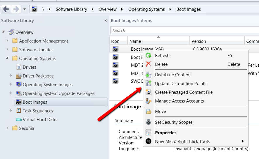 Right click on the boot image and select “update Distribution Points”