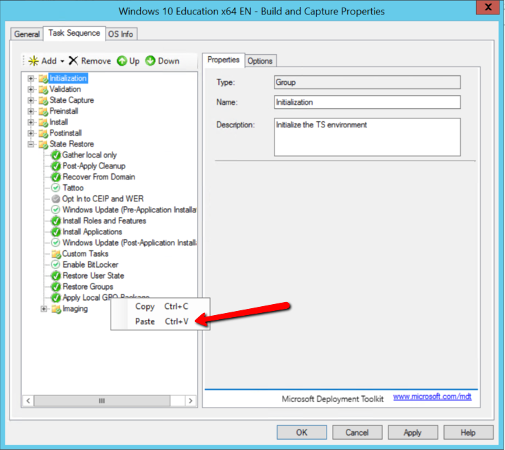 A very common feature introduces in MDT 2010 copy and paste actions between Task Sequence.