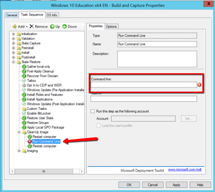And since MDT 2010 it has been working – but in MDT 2013 Update 1 the content of a “command line” is missing after i paste it into a new Task Sequence