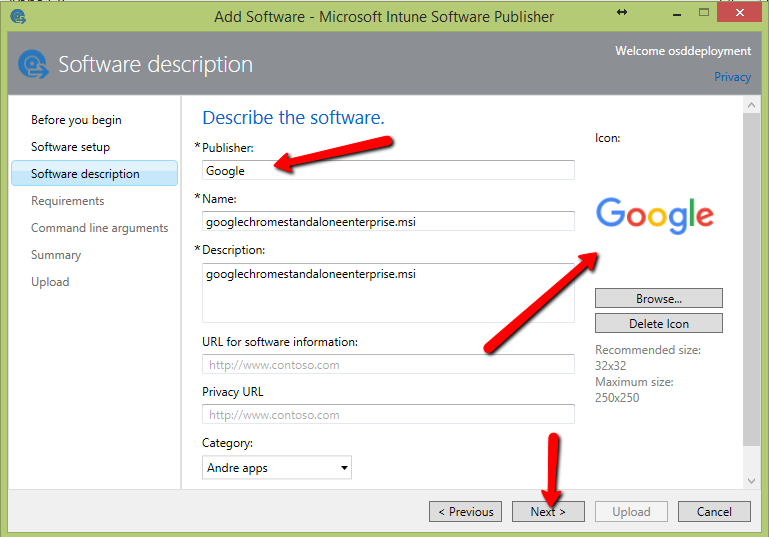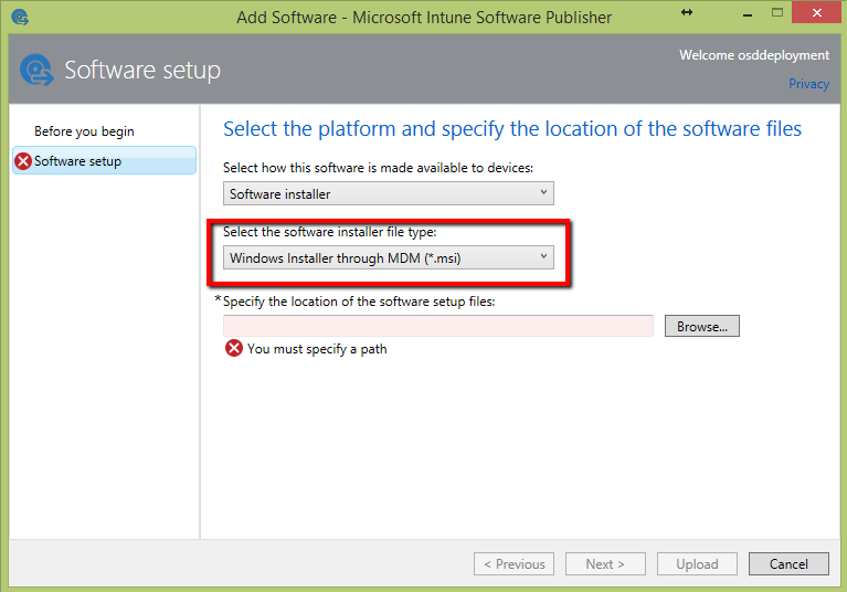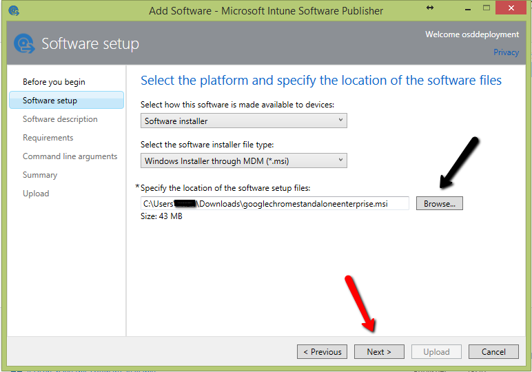 Browse for the MSI you want to deploy