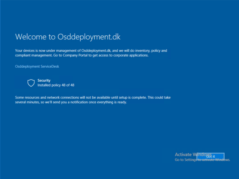 This is how it look like from a users perspective – the user have to click got it to continue to the desktop