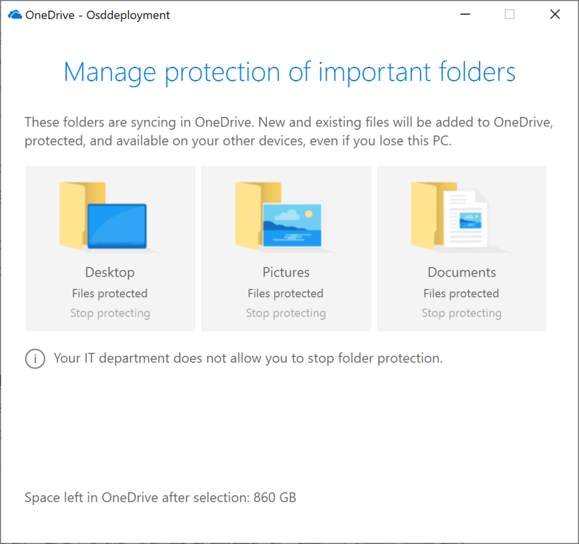 Silently move Windows known folders to OneDrive