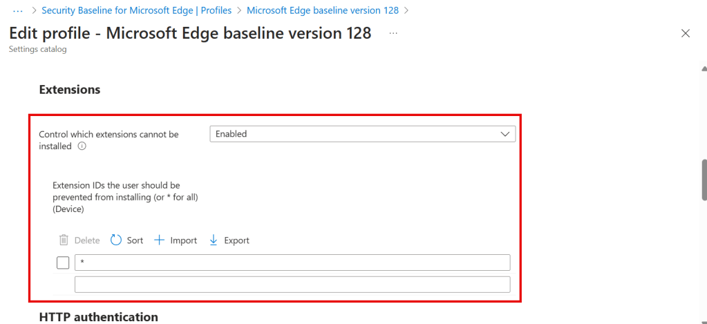 In this case you as an IT admin want to ensure what browser extensions are installed on you corporate devices. One way of doing that is by leveraging Microsoft Edge baseline version 128, as the recommendation is to block all extensions and then you can create a specific allow list.