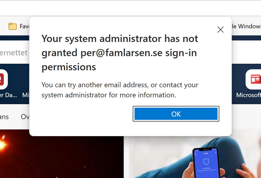 You get a message that Your profile doesn’t have sign-in permissions