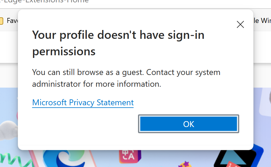 MSA end user experience for blocked Edge extension