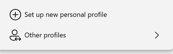 If you try and Set up new personal profile in Microsoft Edge